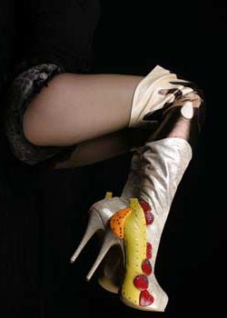Applied decoration using Leather, Snakeskin and Swarovski crystals.